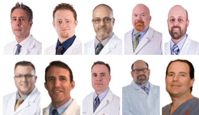 Top Row (L-R): Drs. Timothy Donatelli, Jeremy Brouillette, James Chianese,. Douglas Dockery, & Dr. Marshal Gwynn. Bottom Row (L-R): Drs. Brad Hoffman, Robert Schopf, Mark Wilt, William Weily, and Joseph Protain. |