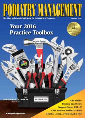 We've just mailed the January 2016 issue of Podiatry Management. This special issue features the cover story "Your 2016 Practice Toolbox." In addition, you'll find the usual assortment of features, including our columns and a CPME-Approved CME.