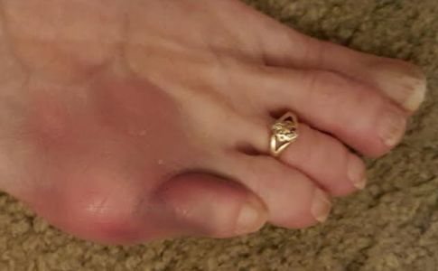 I have an identical picture of my wife's foot from about 6 months ago. She has psoriatic arthritis and has been treated with Embrel for about 7 years. Before that, it took about 8 years for her to be diagnosed. All blood tests consistently were negative and her rheumatoid profile was negative repeatedly. The diagnosis was made through clinical patterns and then, when she started Embrel, the lesions (mostly in the palm of her hand) and pains went away.