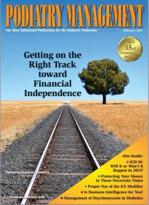 We've just mailed the February 2015 issue of Podiatry Management. This issue features our cover story "Getting on the Right Track toward Financial Independence." In addition, you'll find our usual assortment of features, including our columns, and a CPME-approved CME.