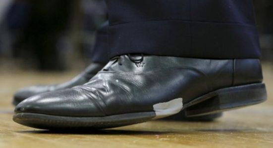 Jeb Bush’s 2016 campaign is falling apart, if his footwear is any indication. The Republican presidential candidate was spotted Sunday at a rally in New Hampshire sporting shoes held together with a piece of gray tape.