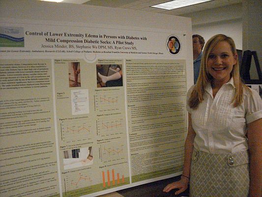 Jessica Minder, a third-year student at the Dr. William M. Scholl College of Podiatric Medicine won 4th place and received the Sigma Xi Merit Award for her research entitled “Control of Lower Extremity Edema in Persons with Diabetes with Mild Compression Diabetic Socks” at the 2011 Midwest Student Biomedical Research Forum (MSBRF) in Omaha, NE. Jessica conducted her research as part of Scholl’s NIH-funded summer research fellowship program.