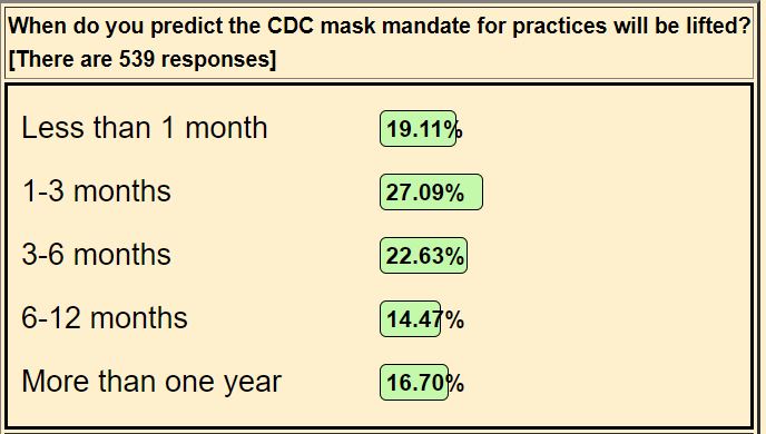 Unfortunately, the mask mandate for healthcare settings may be permanently in place. Bureaucrats will never relax a regulation unless the risk of doing so is zero AND they have tremendous pressure to do so. They can’t lose their job if they overreact to a threat. Take masking in schools, for example. The U.S. is an outlier in the world community. No European nation has required children to mask for quite some time now, because they listen to actual science, not the ‘‘science” so many public officials here in United States claim to follow.