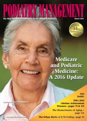 We've just mailed the March 2016 issue of Podiatry Management. Our cover story is titled "Medicare and Podiatric Medicine: a 2016 Update." In addition, you'll find our usual assortment of features, including our columns and a CPME-approved CME. You'll also find out who enteres into this year's PM Podiatry Hall of Fame.