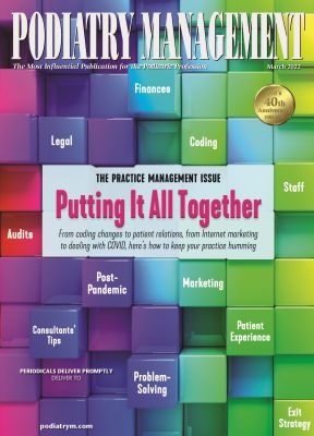 We've just mailed the March 2022 issue of Podiatry Management. The cover story is titled "The Practice Management Issue: Putting it all Together." In addition, you'll find our usual assortment of columns and features. The March 2022 CME will be published online.