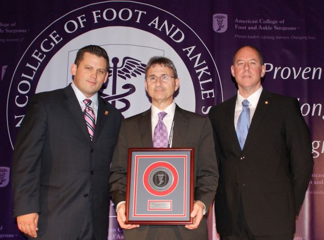 Dr. Alan Catanzariti (C) is presented Distinguished Service Citation from Drs. Michael Lee (L) and Glenn Weintraub (R) |