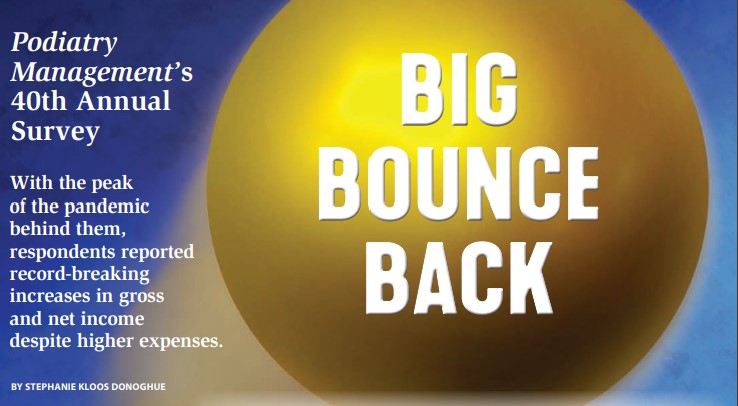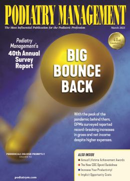 We've just mailed the March 2023 issue of Podiatry Management. The cover story is titled "PM's 40th Annual Survey: Big Bounce Back: With the peak of the pandemic behind them, DPMs surveyed reported record-breaking increases in gross and net income despite higher expenses." In addition, you'll find our usual assortment of columns and features.
