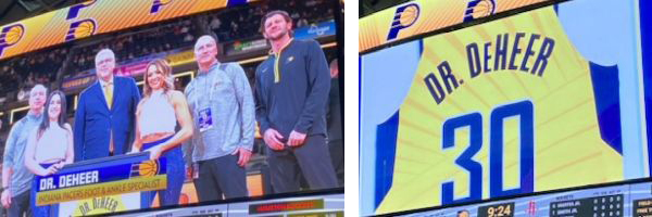 The Indiana Pacers honored Patrick A. DeHeer, DPM for his 30-years as team podiatric physician from 1992-2022. Dr. DeHeer was recognized on court prior to the Pacers vs. Rockets game at Gainbridge Fieldhouse in Indianapolis.