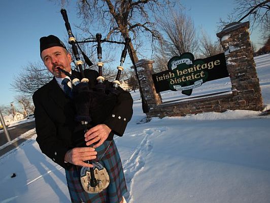 Dr. Michael Hanzly is a podiatrist in South Buffalo, but playing the bagpipes is his real passion. Initially drawn to bagpipes by their haunting sound, this student of history has learned all he can about the Great Highland Bagpipe that dates back to 4000 B.C.