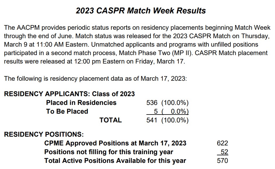 2023 CASPR Match Week Placement |