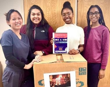 Starting late last year, members of the Classes of 2024 and 2025 collected socks and shoes to donate to Harlem United, a non-profit organization that provides healthcare, housing, supportive services and harm reduction to neediest New Yorkers. Included with their donations were a large number of baby socks donated via and repaired by Rose Duran of NYCPM's Housekeeping Department.