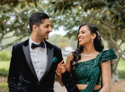 Amit Raj, DPM’s cousins kept nudging him to ask Dr. Ami Deepak Modi out. So he got her on board to pretend they were dating. Soon enough, they really were. “We need to mess with my cousins,” Dr. Raj texted her via his beloved, dinosaur of a flip phone. On Sept. 2, 2021, after he created a fake anniversary party invitation to get them to California, he got down on one knee as she stood in heels on a cliff overlooking the Pacific Ocean at sunset in Big Sur. Always the jokester, he gave Dr. Modi, who is taking his name, a choice of a blueberry pop ring or diamond ring.