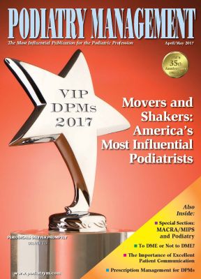 We've just mailed the April 2017 issue of Podiatry Management. Our cover story is titled "Movers and Shakers: America's Most Influential Podiatrists." In addition, you'll find our usual assortment of features, including our columns and a CPME-approved CME.