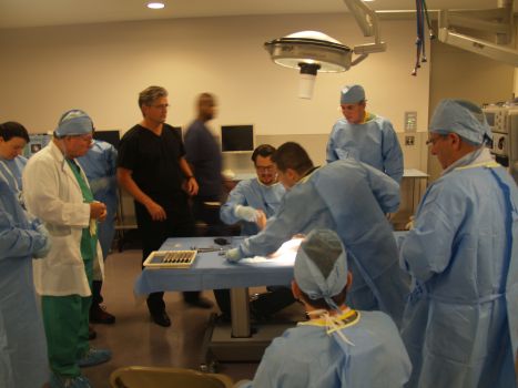 Dr. Michael Graham (center) demonstrates use of HyProCure implant |