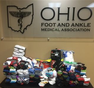 OHFAMA’s sock drive, aided by APMA new samples of socks, shoes, and boots yielded $325 and 331 pairs of socks. Items shown were sent to Clendenin, WV. That community lost both schools and their entire town. OHFAMA pooled their resources and was fortunate to take advantage of the recent state tax-free holiday in Ohio to purchase the socks.