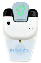 This summer, Biovigil rolled out their first product: a sensor-laden electronic badge that uses traffic-light language—red, yellow, and green flashing lights—to hold doctors accountable for hand-hygiene. To use the Biovigil system, hospital workers clip the two-ounce electronic badge onto their pockets. The badge can detect infrared sensors that Biovigil installs in patient rooms, so that every time the doctor or nurse in question walks in or out of a new room, the badge knows. Hospital workers will sanitize their hands, either with Purell or soap and water, and hold one hand near the badge. Chemical sensors in the Biovigil gadget will detect clean hands, and cue a green light. If the doctor delays the process, the badge turns yellow. If they downright ignore it, it glares red.