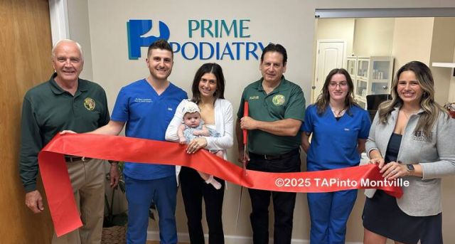 Prime Podiatry opened in Pine Brook with a ribbon cutting ceremony held on Sept. 10, as owner Elias Logothetis, DPM cut the ribbon with his wife and newborn, along with Mayor Matt Kayne, Committeeman Rich Conklin, and the head of the Montville Township Chamber of Commerce, Nina Hogan.