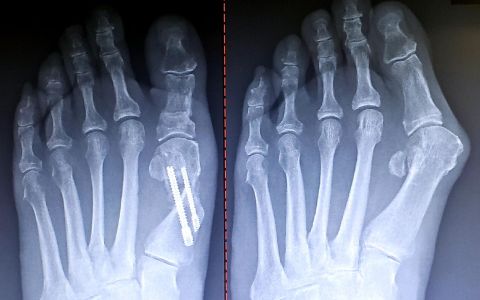I also believe that healing of this aggressive correction can be attributed to minimal disruption of the periosteum, soft tissues, and joint capsule. As with other types of MIS bunionectomies currently being performed, joint range of motion is essentially unaffected because the osteotomies are extra-capsular. The case (above) presented is approximately 10 weeks post-operative.