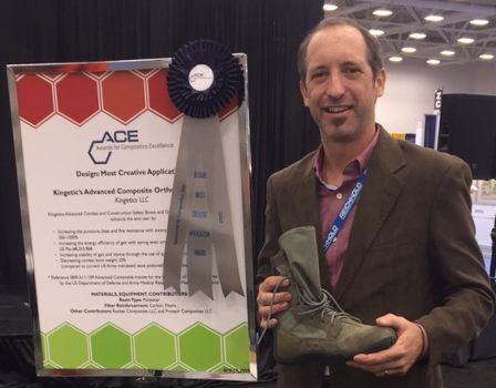 Podiatrist-owned orthotics company Kingetics, LLC recently received the Design Award for Most Creative Application of Advanced Composite Materials at the American Composite Manufacturing Association’s and Society for the Advancement of Material and Process Engineering’s annual CAMX show in Dallas, TX.