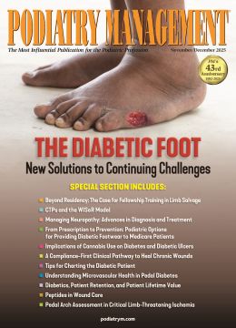 We've just mailed the November/December 2025 issue of Podiatry Management. The cover story is titled "The Diabetic Foot: New Solutions to Continuing Challenges." This special annual issue contains over a dozen diabetes-related articles. In addition, you'll find our usual assortment of columns and features and a CPME-approved CME.