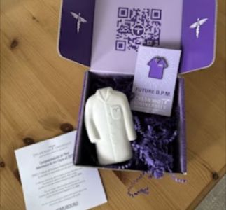 The award-winning entry — a recruitment box for the College of Podiatric Medicine and Surgery (CPMS) — was among the 195 projects selected for recognition. The recruitment box included a stress toy in the shape of a white coat, a "Future DPM" lapel pin, and a welcome card for newly-admitted students.