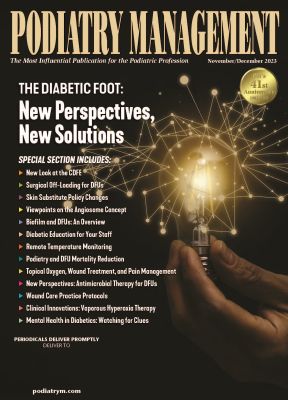 We've just mailed the November/December 2023 issue of Podiatry Management. The cover story is titled "The Diabetic Foot: New Perspectives, New Solutions." This special annual issue contains over a dozen diabetes-related articles. In addition, you'll find our usual assortment of columns and features. The November CPME-approved CME will appear online later this month.