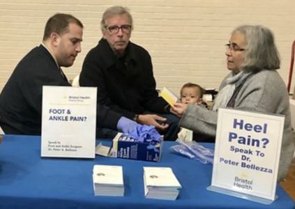 “A lot of people that come to these events may not be hooked up with a provider yet and they’ve got issues that are limiting the way they do their job or participating in activities. By providing screenings and just giving some helpful free advice, it can kind of get them back to living a better lifestyle and diminishing the pain they’ve been dealing with,” said Peter Bellezza, DPM, MS at Bristol Health Medical Group who was providing foot/ankle screenings.