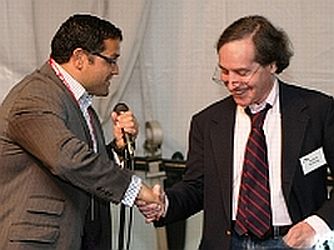 Dr. Stephen Weinberg (R) receives award from Chicago Marathon medical director Dr. George Champus. |
