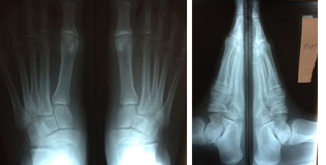 This 21 year old athletic male was born with a clubfoot deformity. He has had soft tissue correction (B/L posterior, medial, lateral, and plantar release) at two years of age. His chief complaint is medial and lateral ankle joint pain. His limbs are equal in length with >10 degrees of dorsiflexion. He has limited active supination. He has a decreased medial arch.