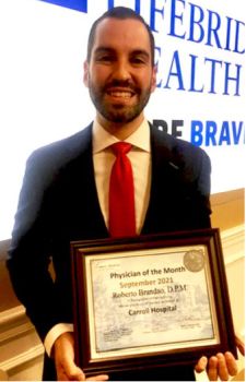 Roberto Brandão, DPM, podiatry, was chosen as Carroll Hospital's September Physician of the Month. Affiliated with the hospital for three years, Dr. Brandão was recognized for consistently going above and beyond his duties to care for patents, such as providing medical consults and intervening when called for assistance, collaborating with experts to help diagnose patients, and assisting with the transfer of a patient to a specialty hospital for care.