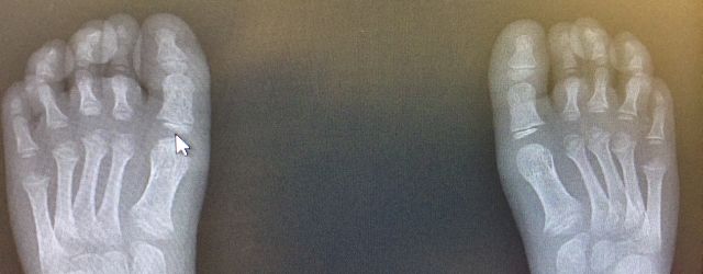 For the past three months, this 3-year old white, healthy female has been waking up 1-2 times a week from a deep sleep complaining of pain in the area of the distal 2-3 met heads bilaterally. She has no complaints during the daytime.