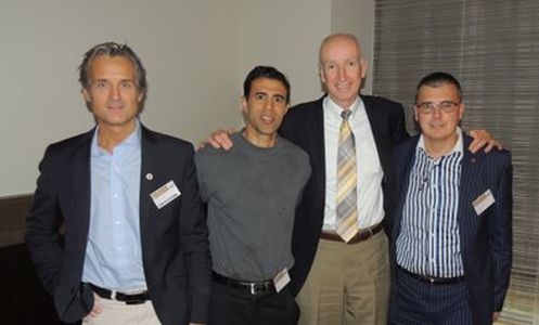 (L-R) Drs. Ludger Gerdesmeyer, Amol Saxena, John Grady, and Stuart Metcalfe |