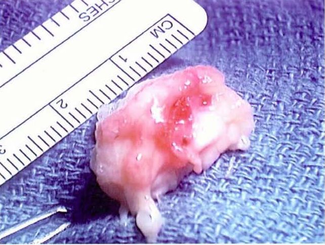 I resected this lesion which emanated from medial dorsal cutaneous nerve from my patient a few weeks ago. We had anticipated a ganglionic cyst, however, clearly this lesion is a neurilemmoma, which is comprised of Schwann cells and often referred to as a Schwannoma. The lesion was well encapsulated and had the same consistency of an intermetatarsal neuroma.
