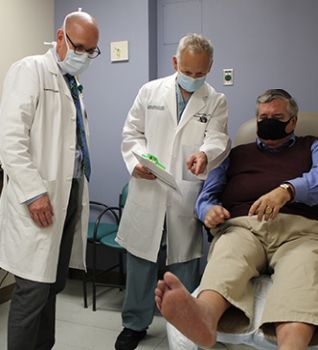 At the appointment, Haverstock admitted Mullinax to UAB Hospital, where he received IV antibiotics over the course of three days. Dr. Haverstock and Kenneth Unger, DPM, assistant professor in the UAB Division of Vascular Surgery and Endovascular Therapy, oversaw Mullinax’s treatment. Their efforts were successful, the infection cleared, and the big toe was saved.