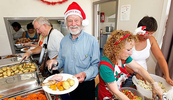 Geoffrey Trethewey (center) Serves Christmas Lunch |