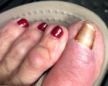 Below is a photo of a toenail which is no longer centrally attached to the nail bed. The nail is arched away from the nail bed. Under the arch there is nail fungus growing on the nail bed. I was wondering if any colleagues have any “pearls” in successfully treating this condition in order to bring back a normal toenail.