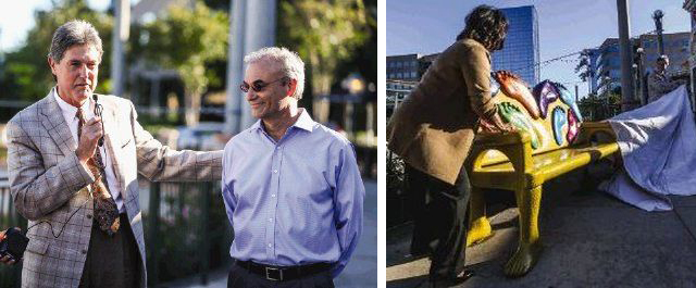 (L-R) Dr. Robert Neville with artist Rod Flower; unveiling of bench (Photo: Michael Minasi). |