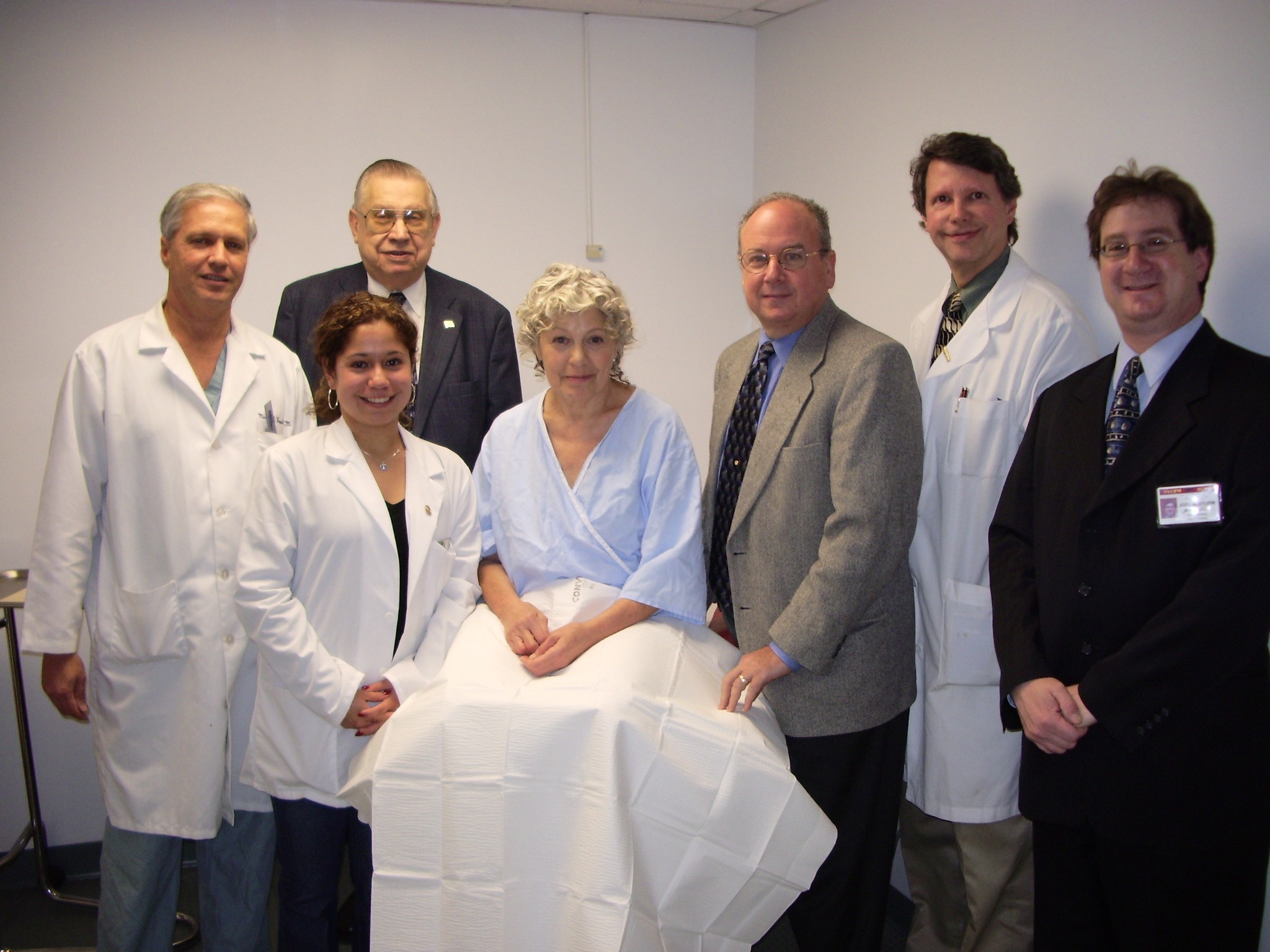 Barbara Haas, the “standardized patient”, a trained professional actor, is flanked by (l. to r.) Michael J. Trepal, DPM, VP, Academic Affairs and Dean; Crystal Gonzalez, Class of 08; Louis L. Levine, President & CEO; Mark H. Swartz, MD, Professor of Primary Podiatric Medical Sciences and VP, Medical & Professional Affairs; Mark A. Kosinski, DPM, Professor, Dept. of Primary Podiatric Medical Sciences; and Joel A. Sturm, VP, Administration.