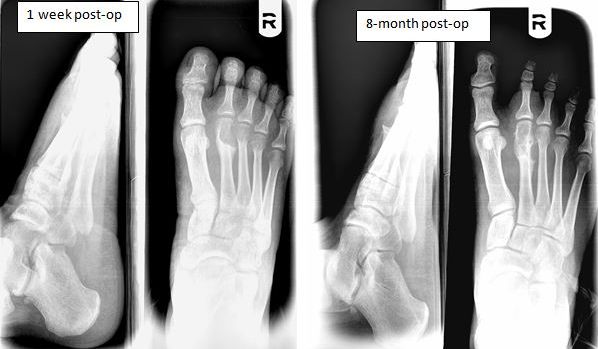 Over the 36 years of surgery, I have done many osteoclasis procedures on metatarsals—but never on a proximal phalanx alone. A gradual lengthening is preferred over a single stage lengthening due to vascular concerns.